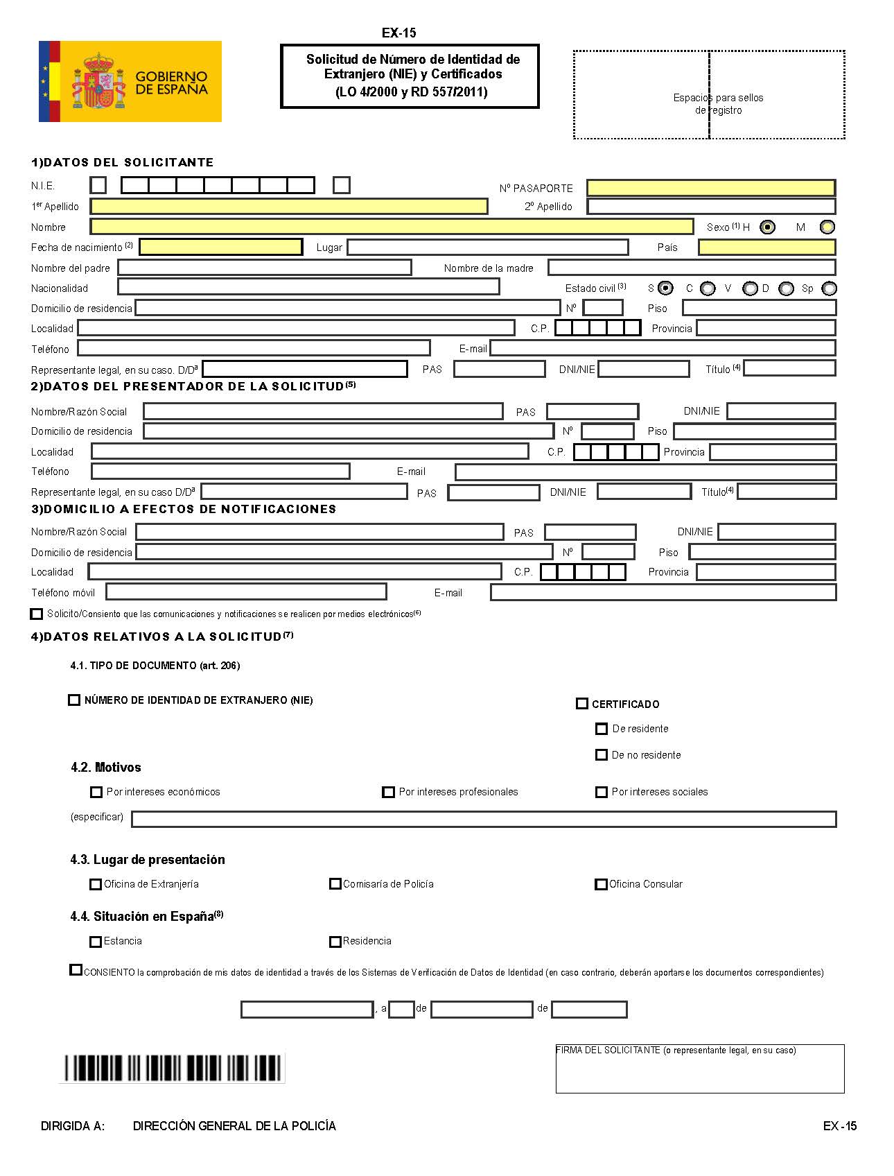 При необходимости получения идентификационного номера в Консульстве Испании, то необходимо запросить и заполнить ту же самую форму ЕХ-15. В данном случае сроки могут быть увеличены значительно. Необходимо проконсультироваться заранее, как происходит данная процедура в вашей стране.